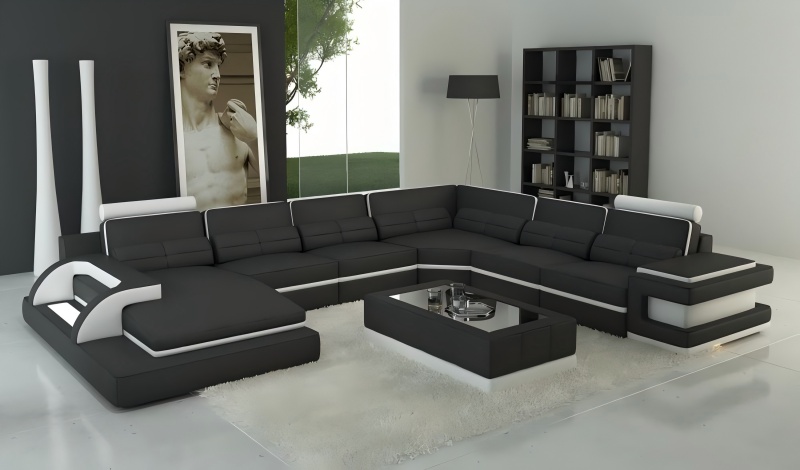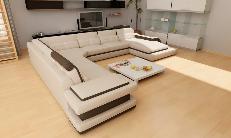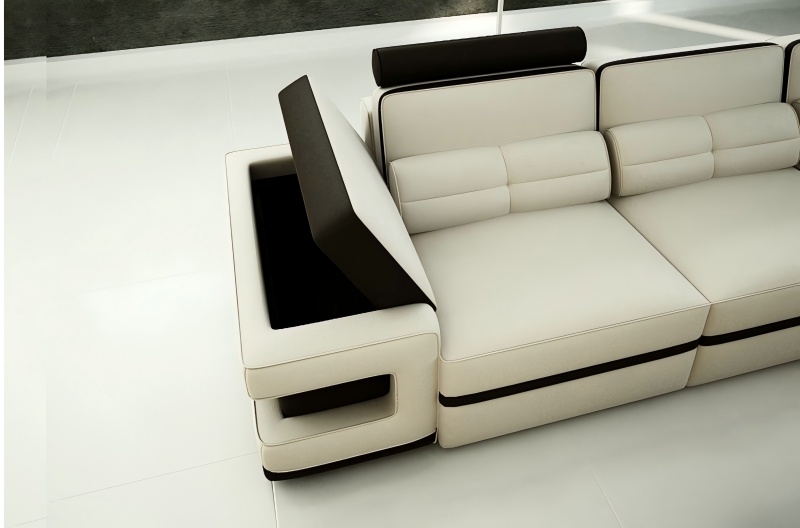 Sofa kulit berbentuk L yang besar ini diperbuat daripada kulit lembu yang diimport atas dengan tekstur semulajadi yang halus dan lembut. Ia dipasangkan dengan reka bentuk lancar minimalis, menunjukkan tekstur mewah yang rendah.