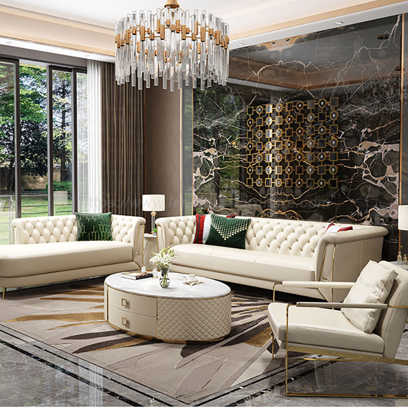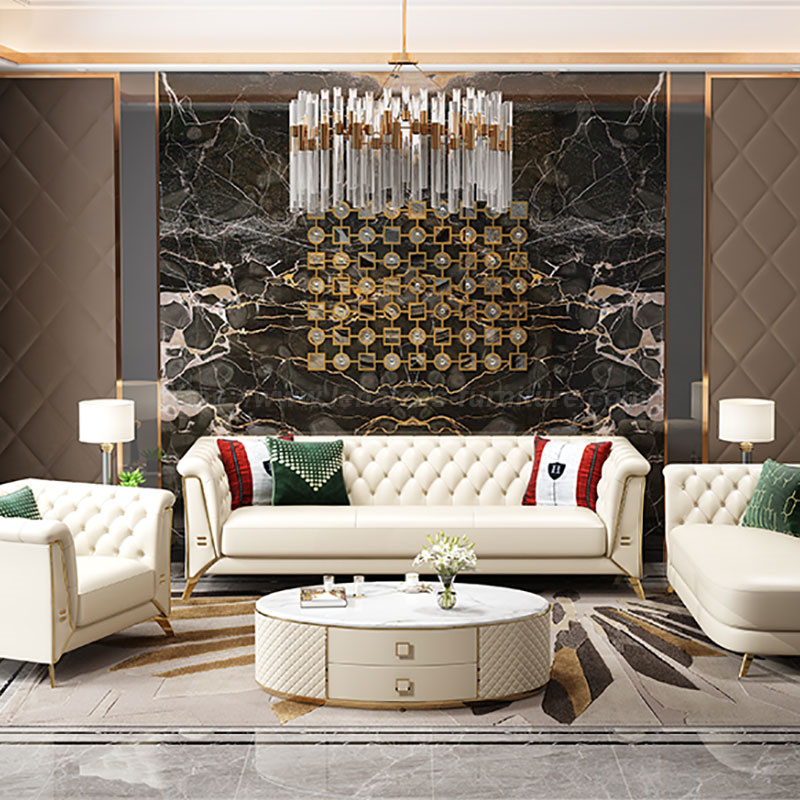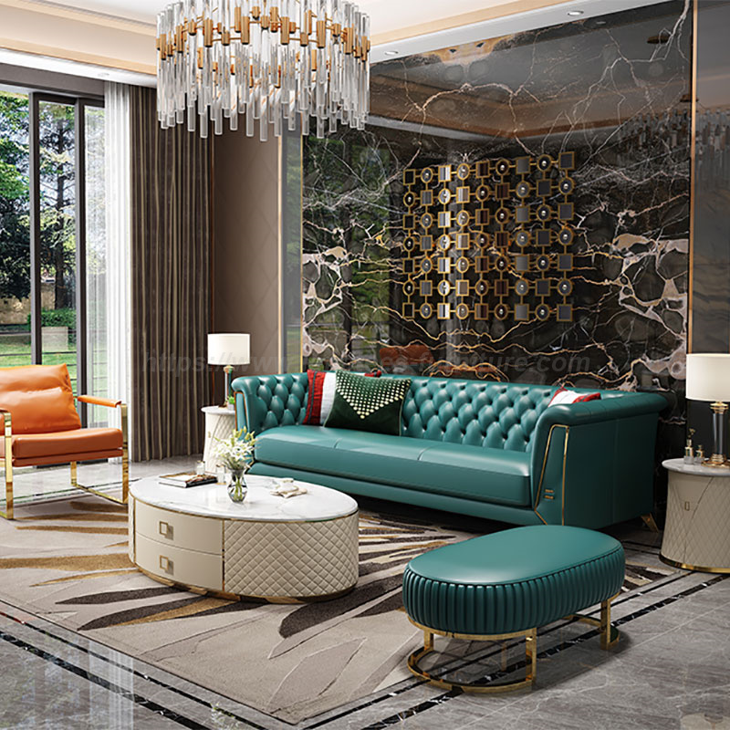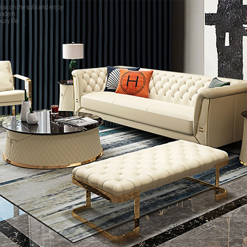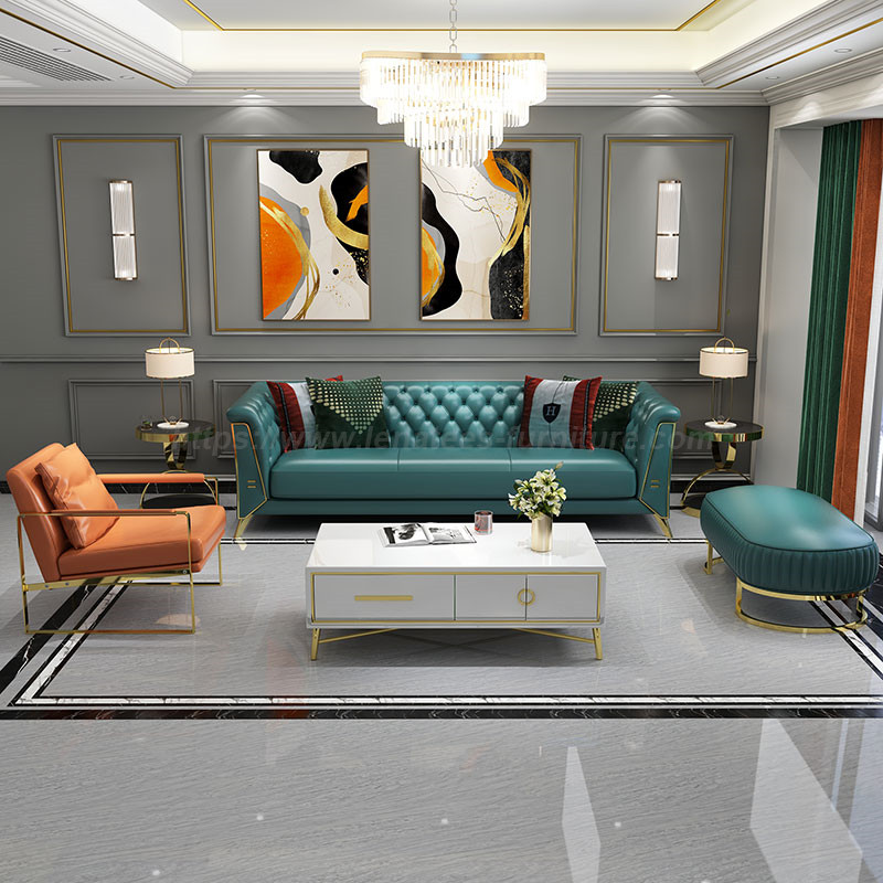 Adakah Anda Tertarik Dengan Bentuknya yang Cantik? Gabungan elemen logam menjadikan sofa lebih artistik dan menambah keindahan pada ruang tamu anda. Proses keluli tahan karat saduran elektrik digunakan untuk menghasilkan lapisan pelindung, yang tidak mudah berkarat, lebih tahan lama dan lebih cerah. Pemilihan latitud tinggi alpine menghasilkan kayu padu. Sofa mempunyai kedudukan yang besar di mana anda boleh duduk dengan selesa. Anda juga boleh berbaring jika anda mahu. Tidak kira apa postur anda, Sofa Ruang Tamu Terkini Tahan Lasak ini akan memberikan anda perasaan yang berbeza.