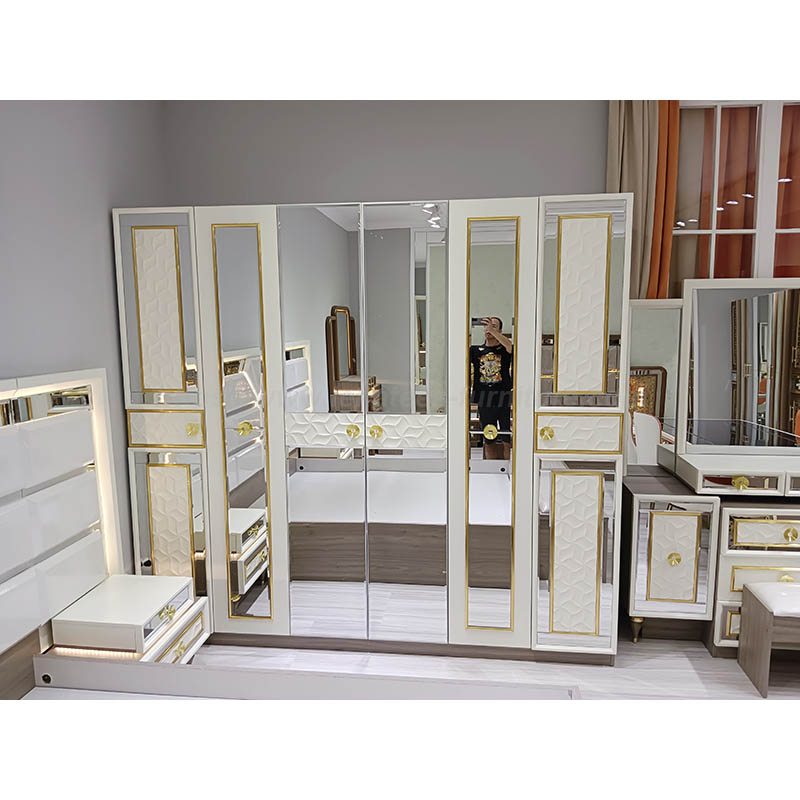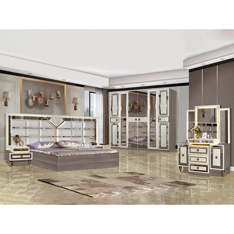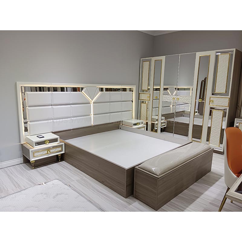 Bilik tidur moden menetapkan struktur tersuai struktur fesyen mudah, menggunakan elemen keluli tahan karat emas, lebih bergaya. Unsur -unsur marmar dan logam, mudah dan mewah, biarkan mata bersinar.