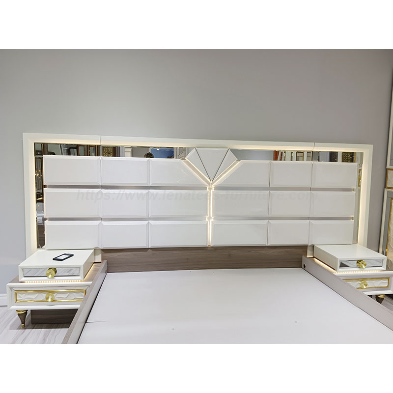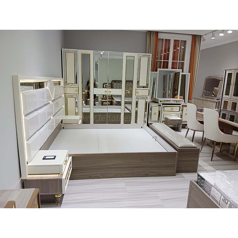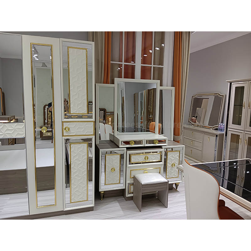 Hiasan lampu katil yang indah, mudah untuk hidup anda, pada masa yang sama untuk menambah sentuhan kecantikan ke bilik tidur anda. Meja cermin yang besar, pulihkan keindahan anda. Ruang penyimpanan yang besar untuk semua alat kecantikan. Penampilan yang bergaya dan atmosfera bukan hanya pakaian, tetapi juga hiasan bilik.