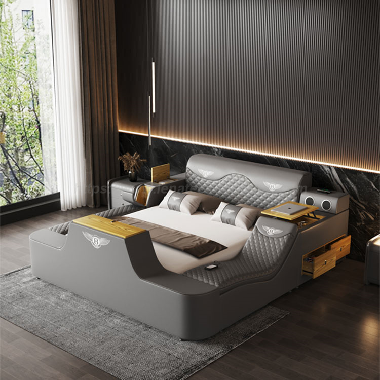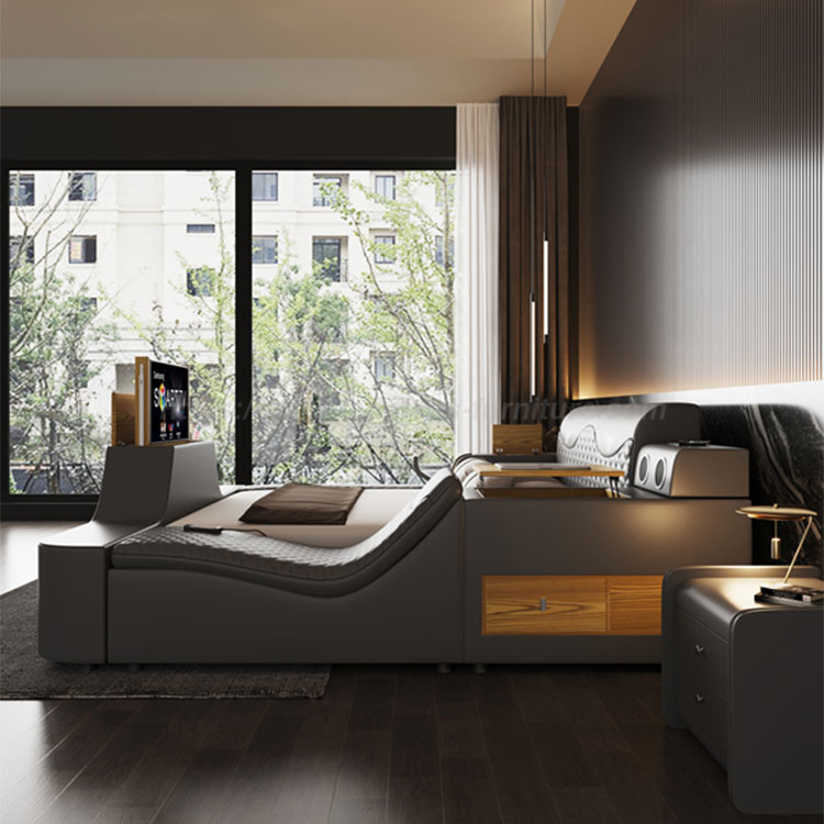 Katil Urut Katil Pelbagai Fungsi Pintar dengan Projektor Boleh Diputar adalah sistem pembendungan terbaik, menawarkan semua yang anda perlukan di dalam bilik anda. Ruang storan yang luas, selamat terbenam dengan kata laluan, pelbagai fungsi disatukan untuk memenuhi keperluan anda yang berbeza, memberikan anda pengalaman penggunaan yang terbaik. C Dengan isian span lantunan tinggi berketumpatan tinggi, kayu terpilih digunakan sebagai rangka katil, memberikan anda kehidupan yang selamat dan selesa.